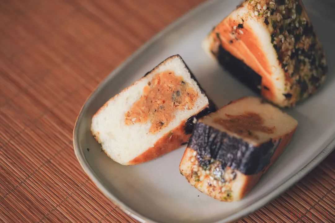 還有日式飯團(tuán)面包,表面是美乃滋醬和肉松,里面也是滿滿的土豆肉松餡,超~級(jí)~香~