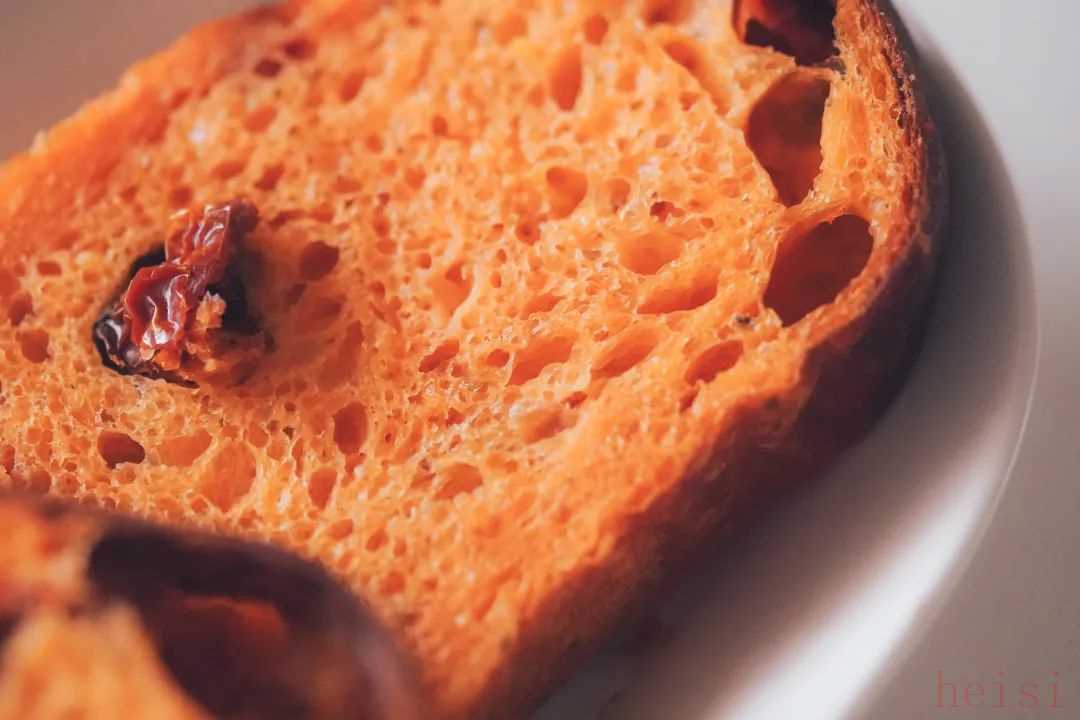 面包體比亞麻籽地瓜更濕潤(rùn)細(xì)膩,是介乎蛋糕和面包之間的口感。