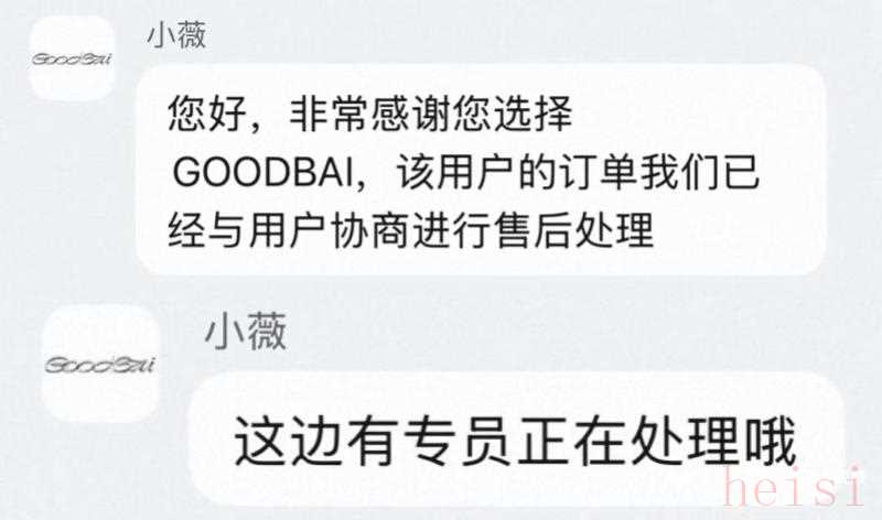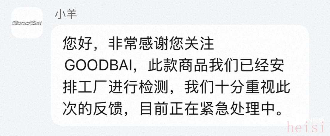對(duì)此,南都記者嘗試致電GOODBAI官方了解具體情況,根據(jù)天眼查所提供的電話撥通后,對(duì)方回復(fù)稱“不太清楚”。而后南都記者又以消費(fèi)者身份咨詢天貓旗艦店客服,客服小薇回應(yīng)表示,“該用戶的訂單我們已經(jīng)與用戶協(xié)商進(jìn)行售后處理,有專員正在處理?!?