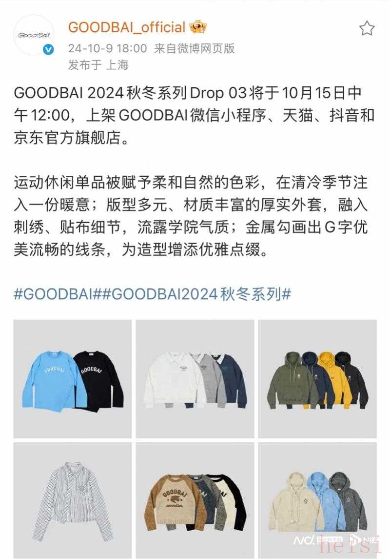 南都記者了解到,該款GB星星白鴿logo衛(wèi)衣為去年上新的GOODBAI 2024秋冬系列Drop 03,官方售價(jià)為599元。目前,包括天貓、抖音、小紅書(shū)和京東在內(nèi)的官方電商平臺(tái)均已無(wú)法查詢到該商品。