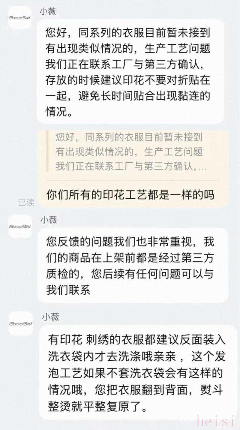 客服回應(yīng)599元衛(wèi)衣品控問(wèn)題