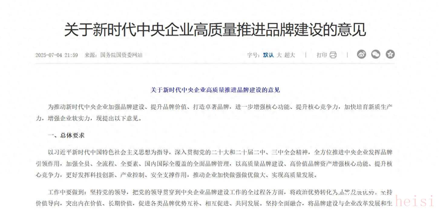 今年7月4日,國務(wù)院國資委印發(fā)《關(guān)于新時代中央企業(yè)高質(zhì)量推進品牌建設(shè)的意見》(以下簡稱《意見》),其中提到,到2030年,中央企業(yè)品牌引領(lǐng)意識明顯增強,品牌強企戰(zhàn)略普遍實施,品牌價值大幅提升,不斷涌現(xiàn)管理科學(xué)、貢獻突出、要素鮮明、價值彰顯的知名品牌;到2035年,中央企業(yè)品牌影響力、競爭力、引領(lǐng)力顯著提升,形成一批管理先進、貢獻卓越、價值引領(lǐng)、享譽全球的卓著品牌。