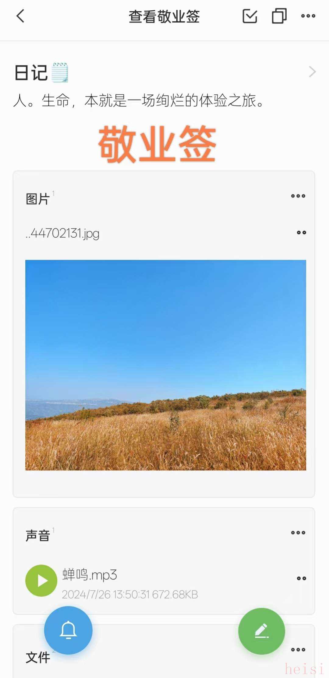 二、敬業(yè)簽它是一款專業(yè)且功能豐富的便簽記事工具,可以保存多個(gè)分類,我們創(chuàng)建一個(gè)專門的便簽分類來(lái)寫日記即可。此外每條便簽中除了可以記錄圖片、文字外,還可以上傳語(yǔ)音、視頻、文檔、表格等附件保存,讓日記內(nèi)容更加直觀、豐富。每個(gè)分類也可以設(shè)置加密保護(hù),安全保護(hù)重要的分類。好用的是,它的內(nèi)容是自動(dòng)上傳到云端備份的,并且支持在不同品牌的安卓、蘋果、鴻蒙手機(jī)上,以及電腦、iPad上使用,內(nèi)容是多端同步的,這樣以后換不同品牌手機(jī),直接在新手機(jī)上使用敬業(yè)簽即可,無(wú)需手動(dòng)轉(zhuǎn)移記錄的內(nèi)容。