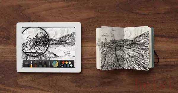 除了本子外,還出了和合作款的繪圖APP【Paper by FiftyThree】,以后只要帶著ipad,就可以隨時隨地在本子上畫畫了。