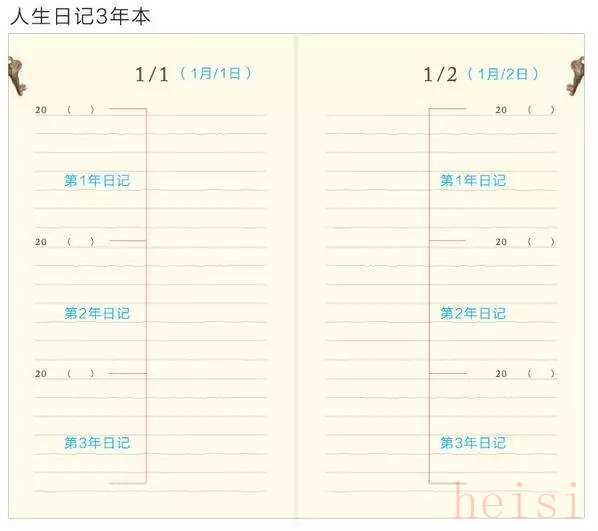 內(nèi)部長這樣,同樣的位置可以記錄不同年份的心情。