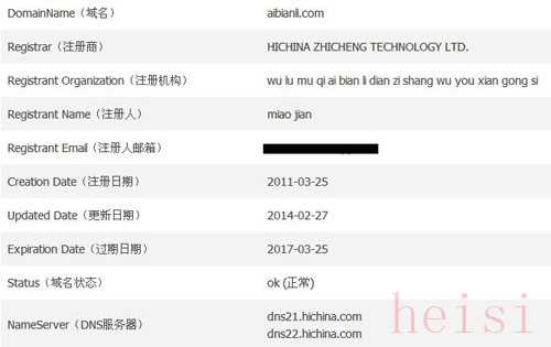 aibianli.com/aibianli.com.cn,發(fā)現(xiàn)均不在其公司名下。