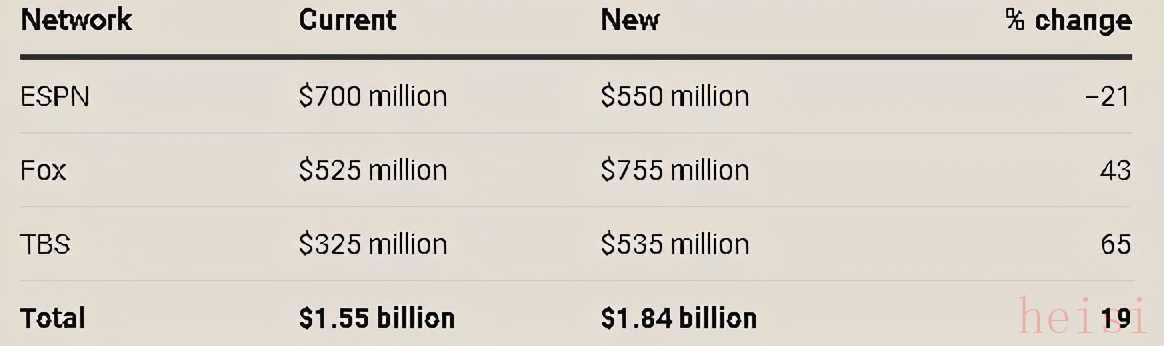 這三家電視臺與MLB的8年合約將在2021年后到期,新的7年合約從2022年開始。