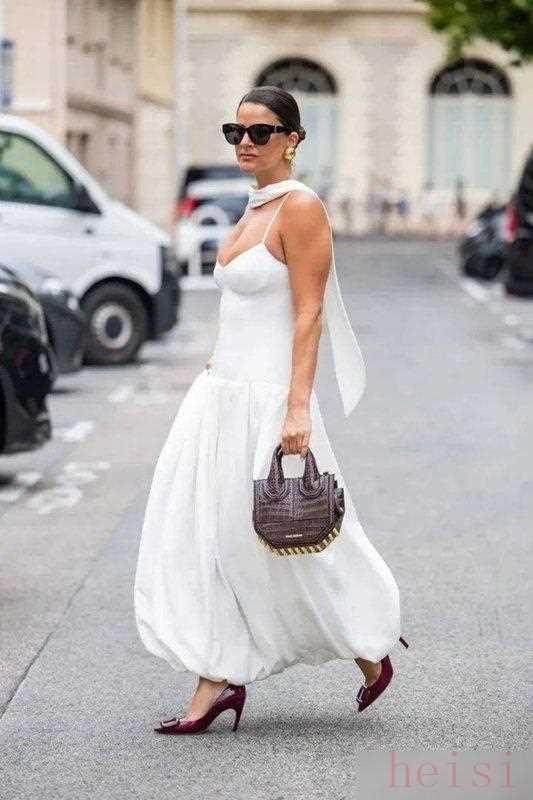 還有那些滾邊、薄紗的小細(xì)節(jié),蕾絲包個領(lǐng)口、真絲裙擺繡點淺花紋,比滿身大logo高級多了——別人看你的裙子,只會摸一下說“這料子真好”,而不是盯著牌子問“多少錢”。日常穿出去,進(jìn)電梯有人夸“你這條裙子好看”,坐咖啡館有人偷偷拍裙擺,這種“不張揚的講究”,才是真正的質(zhì)感?。?/p>