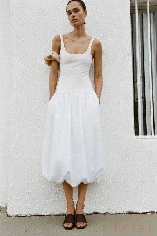 胯部的肉被寬松的裙擺裹得嚴(yán)嚴(yán)實實,底邊稍微收一點,不像傘裙那樣蓬得像個桶,配雙尖頭鞋,腳尖點地的時候裙擺晃兩下,F(xiàn)rench慵懶感直接拉滿——上班穿件針織衫扎進(jìn)腰頭,下班換件吊帶,從寫字樓到咖啡館,無縫銜接的好看,誰看了不說句“會穿”?