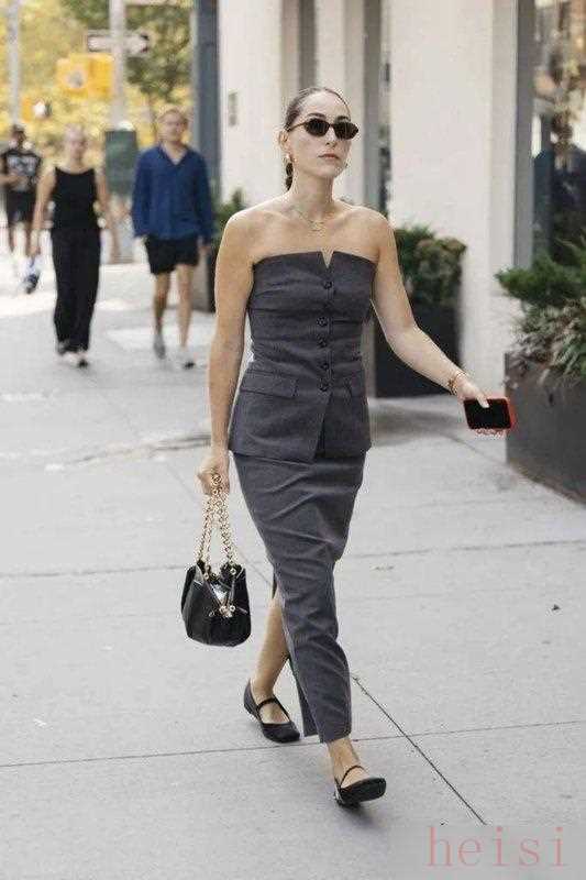 膝蓋下開個小縫,走路時腿若隱若現(xiàn),既不會露得尷尬,又能帶點風(fēng),配件挺括的襯衫或者軟fufu的毛衣,上班開會不扎眼,朋友聚會端杯酒,袖子輕輕擼上去,那種“我很放松但有分寸”的氣質(zhì),比穿得花枝招展管用一百倍。
