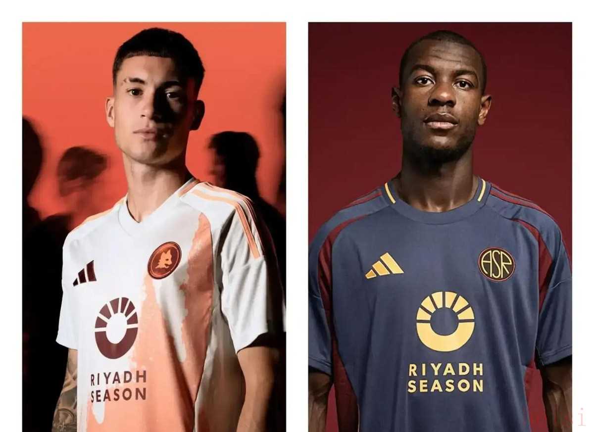 羅馬也有動(dòng)作了。阿迪達(dá)斯這次出手,三款球衣三種隊(duì)徽。主場(chǎng)、客場(chǎng)和第三客場(chǎng),全都不一樣??蛨?chǎng)用“小狼”,就是羅馬第一個(gè)球場(chǎng)那時(shí)候的靈感,也有點(diǎn)街頭涂鴉味。其實(shí)這個(gè)小狼已經(jīng)重復(fù)用過很多賽季,好像大家都很愛這個(gè)形象。然后第三客場(chǎng)是圓形徽章,里面寫著“ASR”,那種隊(duì)徽很少見,只對(duì)摩納哥的時(shí)候穿過。
