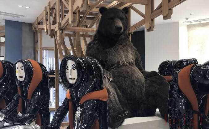 例如在西安SKP這個全球最大旗艦店中,Gentle Monster以“魚工廠”為主題,講述了一個關于神奇村莊的故事。店內有魚、巨大的熊、“村民”、外太空生物和科技感十足的裝置,完全不像一家眼鏡店。