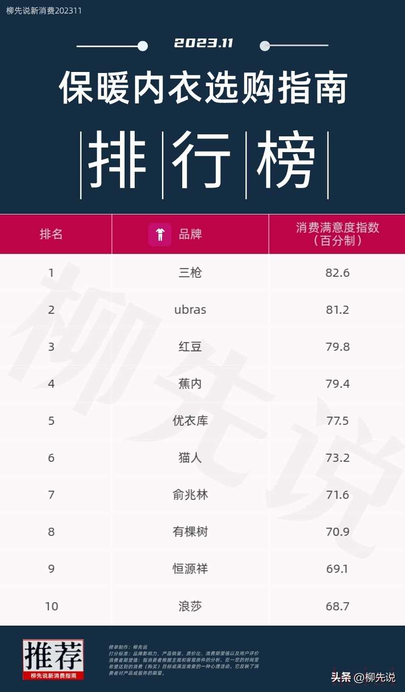 根據(jù)您提供的信息,這份“保暖內(nèi)衣新排名”中: