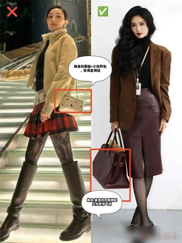 "小個子/纖細(xì)身材:" 小尺寸包、肩帶細(xì)巧的包、或者能產(chǎn)生垂直線條的包(如細(xì)肩帶、斜挎包)會更顯利落。避免過于龐大、笨重或肩帶寬大的包。