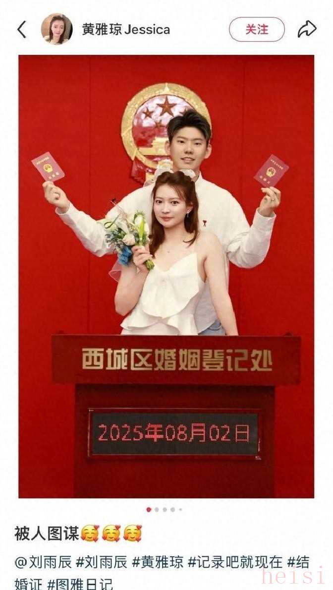微博熱搜炸鍋。在羽毛球奧運冠軍黃雅瓊和世界冠軍劉雨辰曬出結(jié)婚證照片的那一刻,所有人的八卦神經(jīng)被瞬間拉滿——冠軍伉儷,官宣“鎖死”,這不亞于體育圈的一記重磅扣殺。從奪冠求婚到領(lǐng)證結(jié)婚,故事線索一環(huán)扣一環(huán):去年巴黎奧運,劉雨辰在黃雅瓊奪冠的掌聲中跪地求婚,賽場、金牌、鉆戒,哪個不讓人眼泛淚光?交往一年,8月2號,兩人選擇在無數(shù)鏡頭和祝福下“蓋章”,浪漫升級。當(dāng)晚,粉絲留言刷屏:不是小說,是現(xiàn)實,愛情和夢想在同一個賽場并肩飛翔。