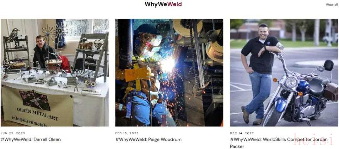在獨(dú)立站開設(shè)"#WhyWeWeld"專欄,通過(guò)講述焊接從業(yè)者的真實(shí)故事,如女性焊工轉(zhuǎn)型藝術(shù)家、全職媽媽通過(guò)焊接改善生活等,通過(guò)挖掘用戶故事增強(qiáng)品牌人文溫度。