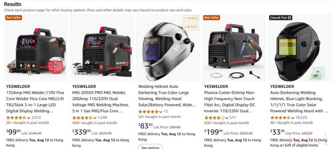 圖源:YesWelder同年4月入駐亞馬遜,亞馬遜上搜索YesWelder,旗下焊接機(jī)器價(jià)格大都在100-1000美金之間,個(gè)別配件如手套、頭盔、焊接鐵絲、焊條等,價(jià)格在29-89美金不等,且多位居亞馬遜BSR之列。