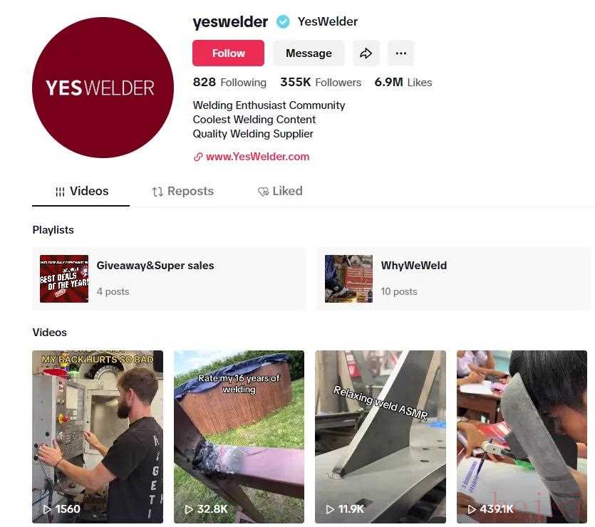 圖源:YesWelder此外,還借助海外社媒平臺(tái)打造多元化營(yíng)銷曝光,主要聚焦于Instagram、YouTube、TikTok、Facebook等。