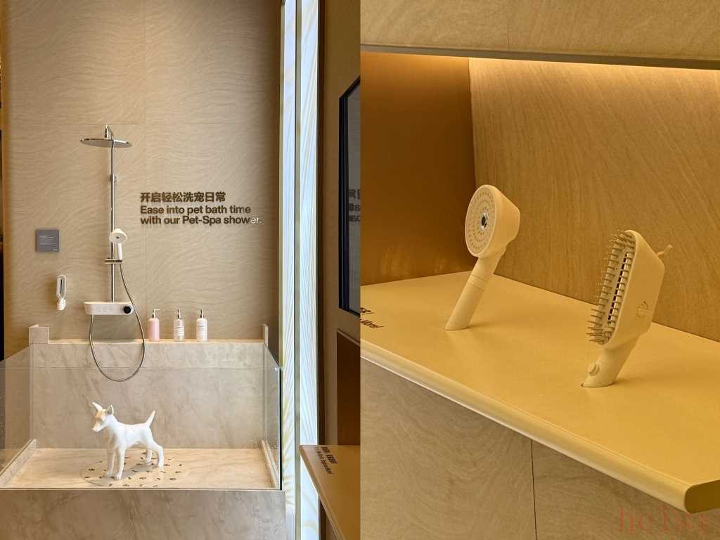 寵物作為家庭成員的地位日益提升,其相關(guān)需求也延伸到了家居場景??评胀瞥鏊纪刈o寵花灑,通過泡泡浴、按摩梳齒以及一鍵止停等功能設(shè)計,解決了寵物洗澡時可能遇到的毛發(fā)清潔、安撫,以及單人操作不便等痛點。衛(wèi)浴空間的邊界,也因這份對“家庭成員”的關(guān)懷而拓展。