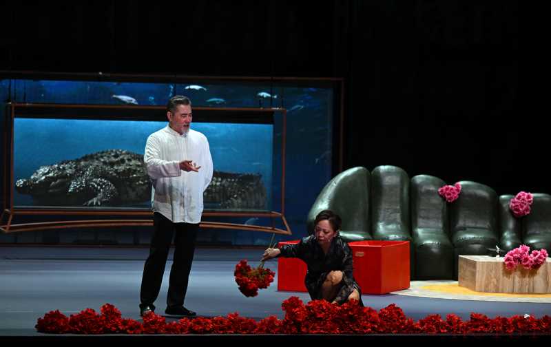 演員趙文瑄(左)、鄧萃雯在話劇《鱷魚》中表演。 新華社記者 金良快 攝