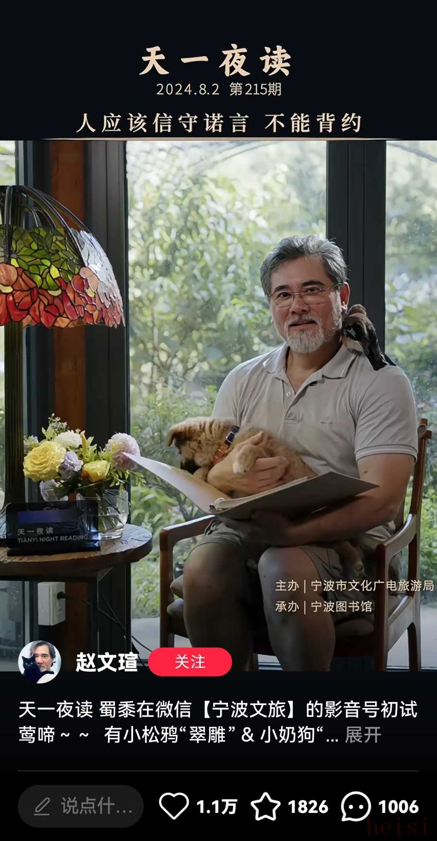 64歲的趙文瑄沒有年齡焦慮,他將之歸結(jié)為“我?guī)缀鯖]有內(nèi)耗這種事”。這幾年,趙文瑄有一半時間住在寧波。最近他開了小紅書賬號,唱歌、朗誦,與網(wǎng)友互動。他認(rèn)真分析網(wǎng)絡(luò)小說優(yōu)劣特點,成功向記者“安利”了一本635萬字的升級流類型小說。