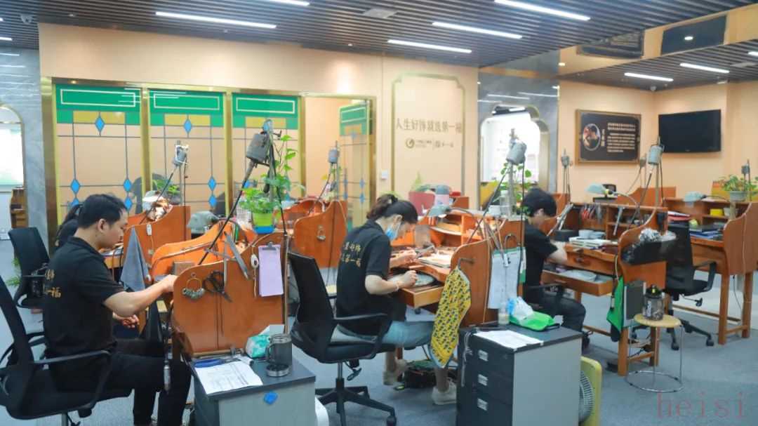 煥新后的打金基地通過精心布局,將店內(nèi)空間巧妙劃分為非遺大師區(qū)、打金服務區(qū)、非遺體驗區(qū)三大主題鮮明的專區(qū),為顧客帶來更加便捷和舒適的打金體驗。