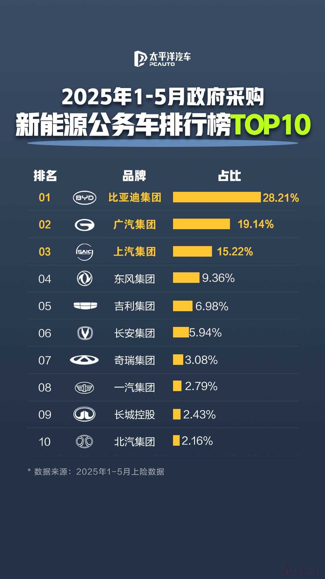 要知道,這不是比亞迪第一次成為“公務(wù)嚴(yán)選”的冠軍,最近,媒體剛剛發(fā)布了2023-2025年政府采購(gòu)新能源公務(wù)車榜單。榜單顯示,比亞迪連續(xù)2年成為政府采購(gòu)新能源公務(wù)車冠軍,銷量占比分別為2023年29.76%、2024年26.09%、2025年1-5月28.21%。