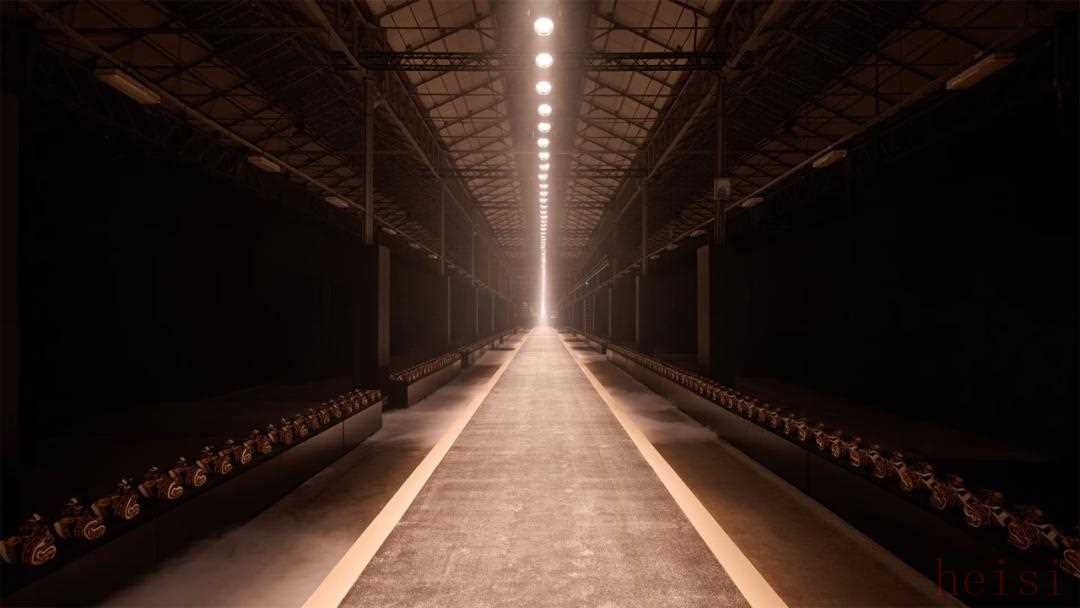 秀場發(fā)布會選址位于米蘭的有軌電車車站,原始的工業(yè)風格營造出冷冽的T臺氛圍,以此靈感空間呼應本季新古典主義碰撞當代美學的創(chuàng)作風格。