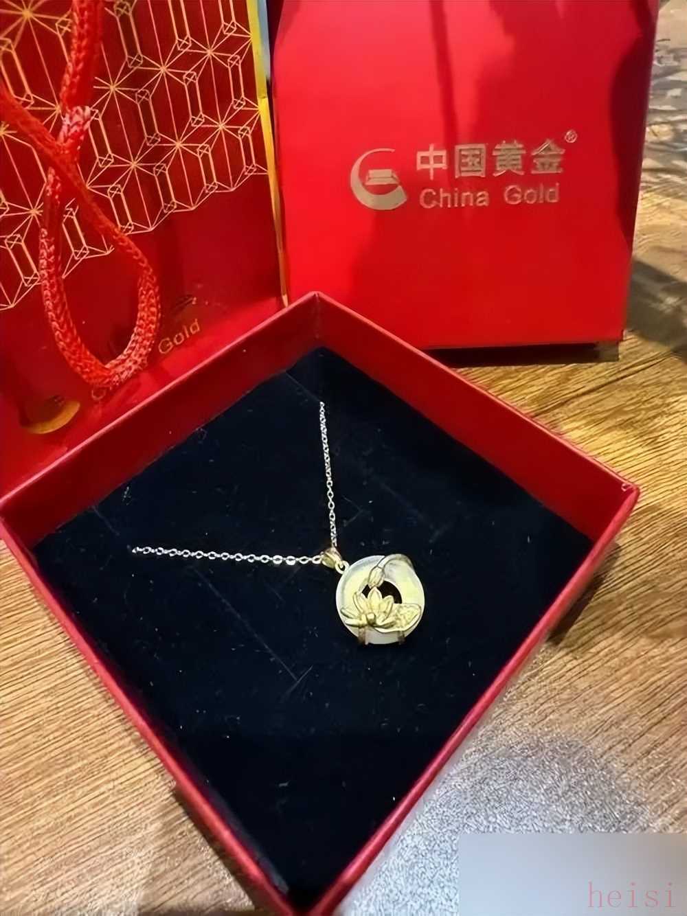 本來以為“傳承”會很老氣,結果拿到手一看,啞光金的質感特別高級,吊墜上的纏枝紋是手工鏨的,摸起來有溫度。老婆戴去單位,同事都問“這是新出的吧?看著比你之前的項鏈高級多了”,她回來跟我顯擺,說“還是你會選,既有心意又不土”。其實咱們中年人哪是要顯擺啊?就是想把“藏在日子里的心思”,通過一件能留得住的東西傳出去——比如結婚二十年的紀念,比如一起走過的歲月,都在這根鏈子上了。
