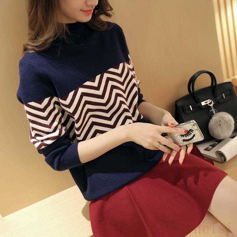 ¥188.00 已有695人圍觀 查看詳情79元【包郵】YRHG2016春裝新款女裝韓版潮流百搭波浪拼色條紋打底針織衫毛衣