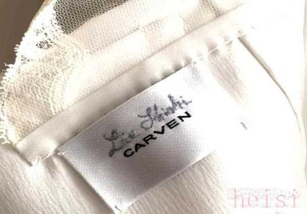 雖然只有一張照片,還是看得出蕾絲的精工細(xì)節(jié)。商標(biāo)上除了Carven的品牌,還有劉詩(shī)詩(shī)名字的拼音。一針一線都看得出手工縫制的精細(xì)痕跡。