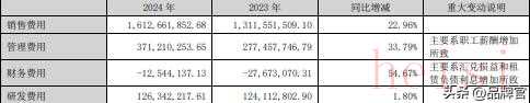 當費用端激進擴張,2024年的銷售費用高達16.12億元同比增加22.96%,其中廣告宣傳同比甚至激增到了108%,管理費用占到了3.71億元,同比增加了33.79%,在請當紅明星代言提高知名度確實立竿見影,但怎么讓人有一種“老實人豁出去”的無奈感?