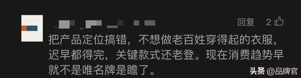 4. "網(wǎng)友:中產(chǎn)不買單 (Netizens: The middle class is not buying):" 點明了原因,即目標消費群體——中產(chǎn)階級——對這種服裝的態(tài)度發(fā)生了轉(zhuǎn)變,不再像以前那樣積極購買。
