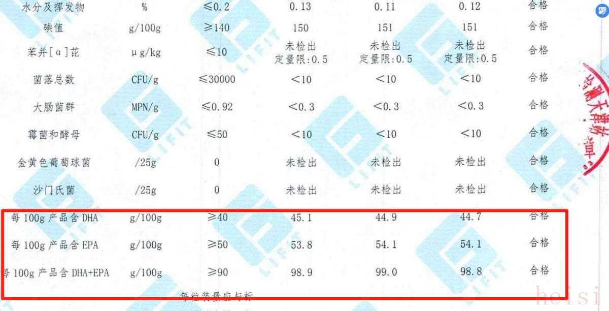 "EPA和DHA含量:" 脂肪酸的具體含量和比例。