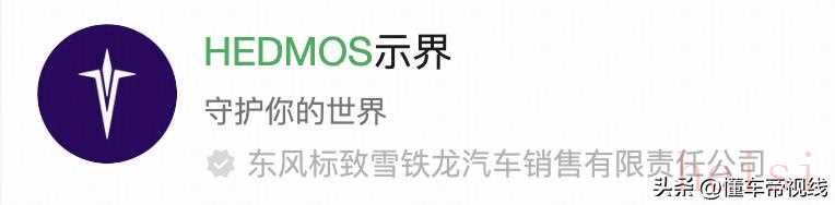 據(jù)悉,2019年東風(fēng)汽車集團(tuán)就注冊(cè)了“示界”、“HEDMOS”商標(biāo),其中“HEDMOS”源于英文單詞head+most,寓意領(lǐng)先、先進(jìn);“示界”為指北羅盤,寓意勇敢探索與堅(jiān)持;品牌LOGO設(shè)計(jì)源于電子轉(zhuǎn)子的橫截面形狀,整體“指北羅盤針” 的造型象征指引方向、探索未知。目前,HEDMOS示界官方公眾號(hào)已正式上線,同時(shí)部分地區(qū)示界4S店也已開業(yè)。