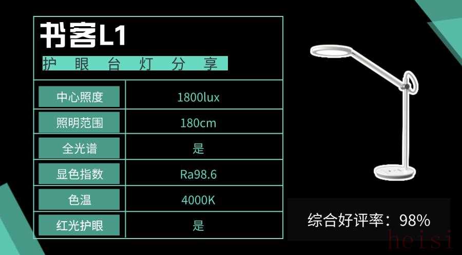 明基WiT護(hù)眼臺燈以獨(dú)創(chuàng)彎月燈頭設(shè)計為亮點,微笑型弧度兼具美觀與實用性,可均勻照亮110公分桌面,大幅擴(kuò)展照明范圍。其不僅內(nèi)置光感應(yīng)器實時調(diào)光,還可通過按壓旋轉(zhuǎn)上方的飛梭旋鈕精準(zhǔn)調(diào)節(jié)色溫亮度。同時,燈體連接處的軸承可以調(diào)整照明角度,適配多種場景。但需注意,長期頻繁調(diào)節(jié)易導(dǎo)致軸承連接處松動,影響燈頭固定穩(wěn)定性,且使用中存在明顯眩光問題。10、書客推薦款:書客L1市場占比:93%上榜理由:罕見獲得CCTV榮譽(yù)展播推薦,被譽(yù)為千元內(nèi)護(hù)眼性能最強(qiáng)王者!
