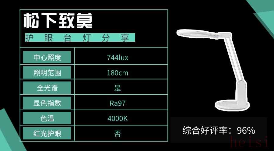 歐普MT004XH-15SX在設(shè)計上獨(dú)樹一幟,匠心十足。15cm的大尺寸燈頭,有效拓寬照明范圍;燈頭做了別出心裁的鏤空設(shè)計,光源面采用雙翼設(shè)計,兩者結(jié)合起來可以讓燈面進(jìn)行上下調(diào)節(jié),不僅能根據(jù)不同場景靈活調(diào)整光線,還能通過物理遮光減少暗影。燈臂的扁平化設(shè)計,節(jié)省空間且便于收納。整體科技感滿滿,又極具實用性。但美中不足的是,關(guān)閉狀態(tài)下光環(huán)境傳感器易誤觸開啟,可能影響使用體驗。6、松下推薦款:松下致莫市場占比:89%上榜理由:采用了補(bǔ)光技術(shù),能有效減少重影面積而且光線也均勻柔和。