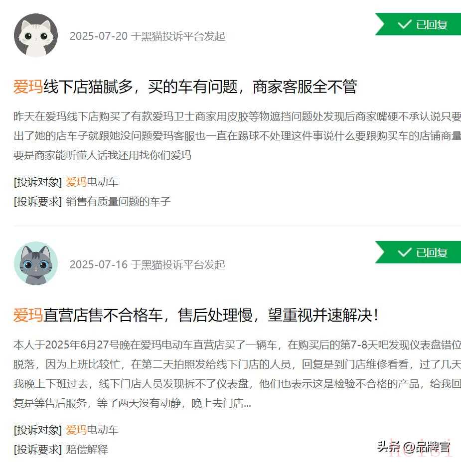 愛瑪電動(dòng)車也多次被投訴,大到產(chǎn)品部件質(zhì)量異常,小到維修售后業(yè)務(wù)滯后。該如何進(jìn)行整改,有關(guān)消費(fèi)者信任危機(jī)該如何重建,都是愛瑪值得考量的問題。