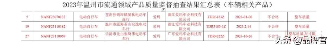 除此之外愛瑪電動(dòng)車抽檢結(jié)果也讓消費(fèi)者心涼一片,最近武漢市市場(chǎng)監(jiān)督管理局公布了最新抽查結(jié)果,愛瑪電動(dòng)車又有三款型號(hào)不合格。
