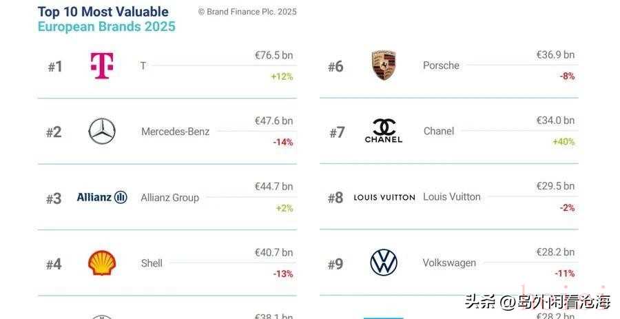 德國電信此次真的很厲害,直接將奔馳和寶馬甩在了后邊,變成2025年歐洲品牌中最大的一個(gè)。你沒聽錯(cuò),就是大多數(shù)人感覺“沒什么神秘感”的通信公司。聽聞今年品牌估值早已飆升到765.14億歐元,轉(zhuǎn)化成RMB,相近6351億。實(shí)際上,這已經(jīng)是德國電信連續(xù)三年占有歐洲最有價(jià)值品牌第一,2年衛(wèi)冕全球電信品牌冠軍。這種資料顯示,2024年收入為1158億歐元。盡管純利潤不上36.5%,但人們?cè)?0多個(gè)國家做買賣,職工不計(jì)其數(shù)。手機(jī)用戶2.61億,固定線路2500萬,寬帶用戶2200萬。就連梅賽德斯和奔馳也只能排名第二。