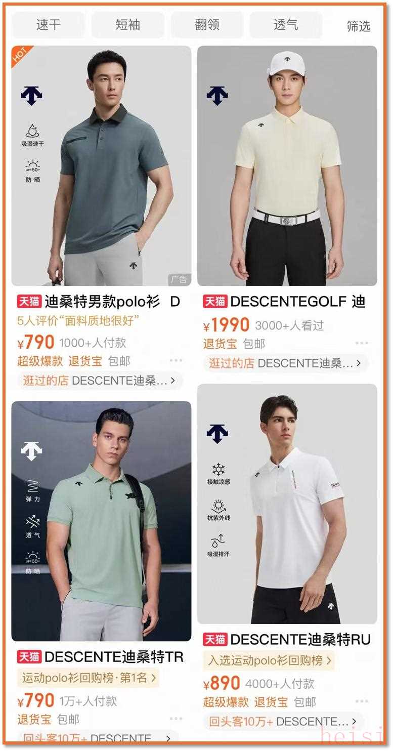 在電商平臺,迪桑特的一件polo衫,銷量3000件,一件890元,快趕上一款基礎款的波司登羽絨服。