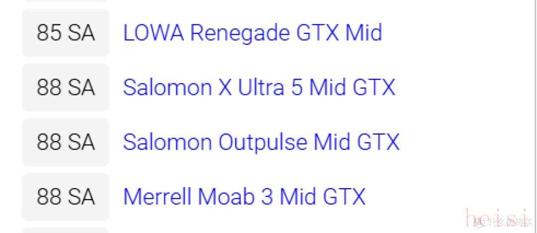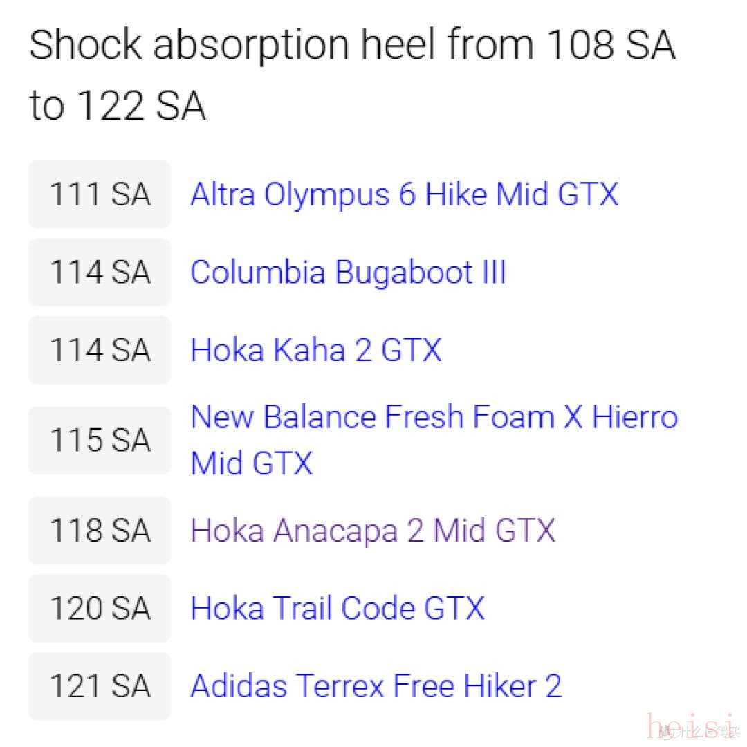 而包括邁樂MOBA3、薩羅蒙Ultra在內(nèi)的不少知名徒步鞋只有80+SA的減震幅度數(shù)據(jù)。