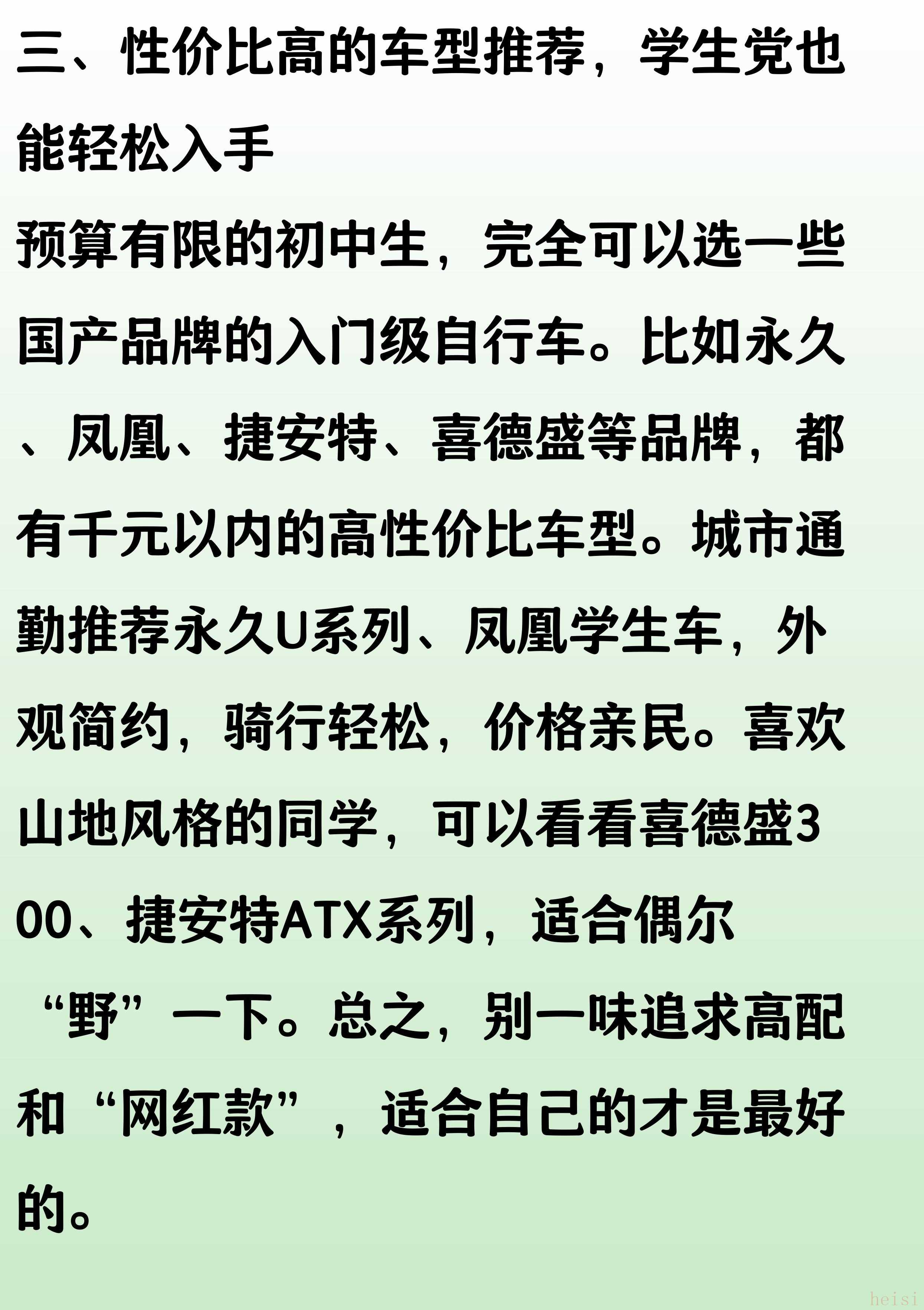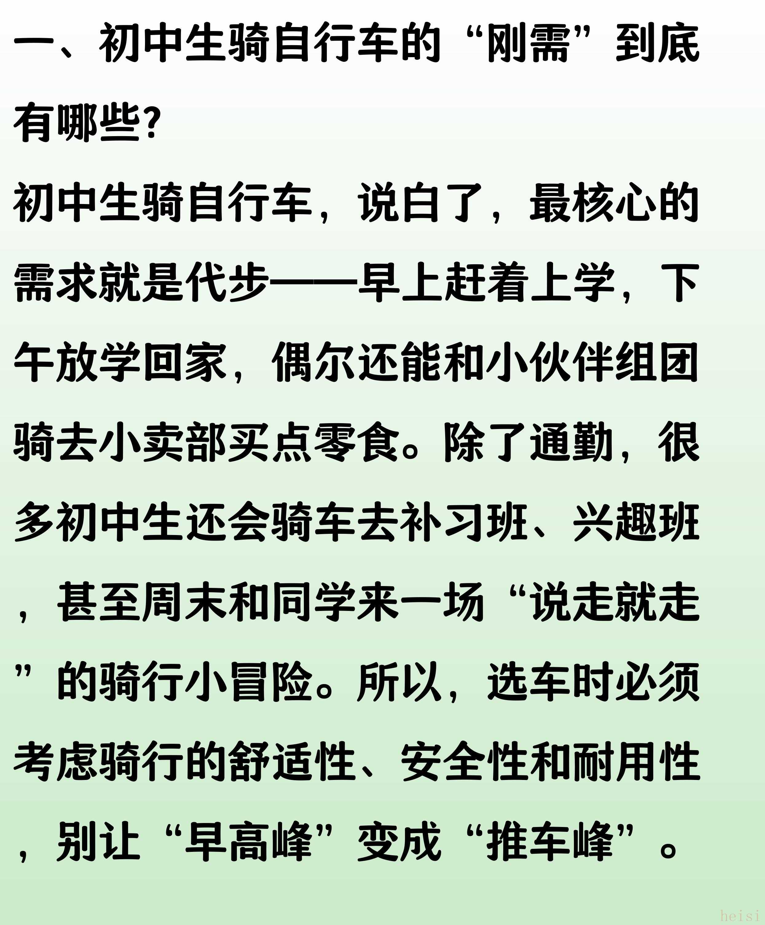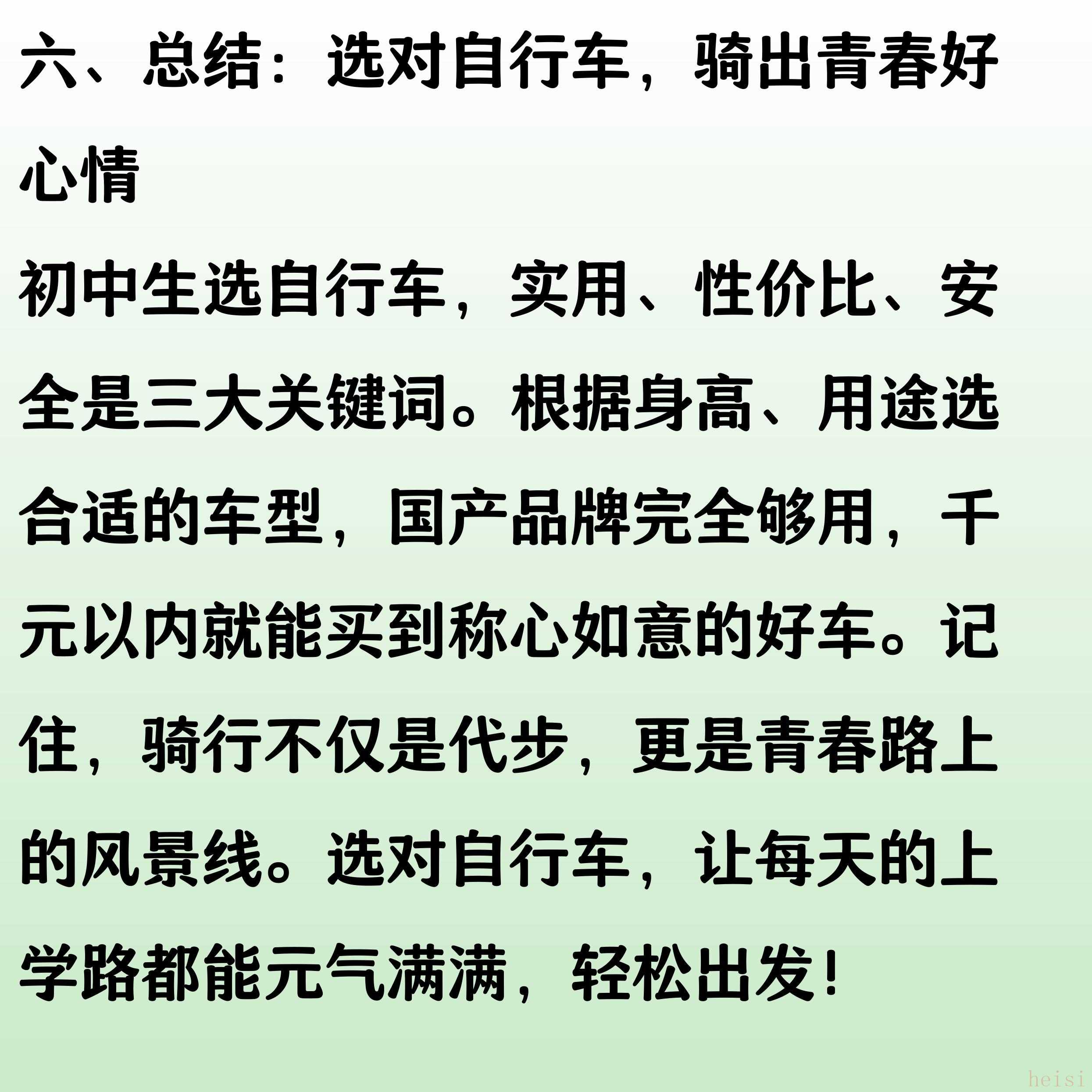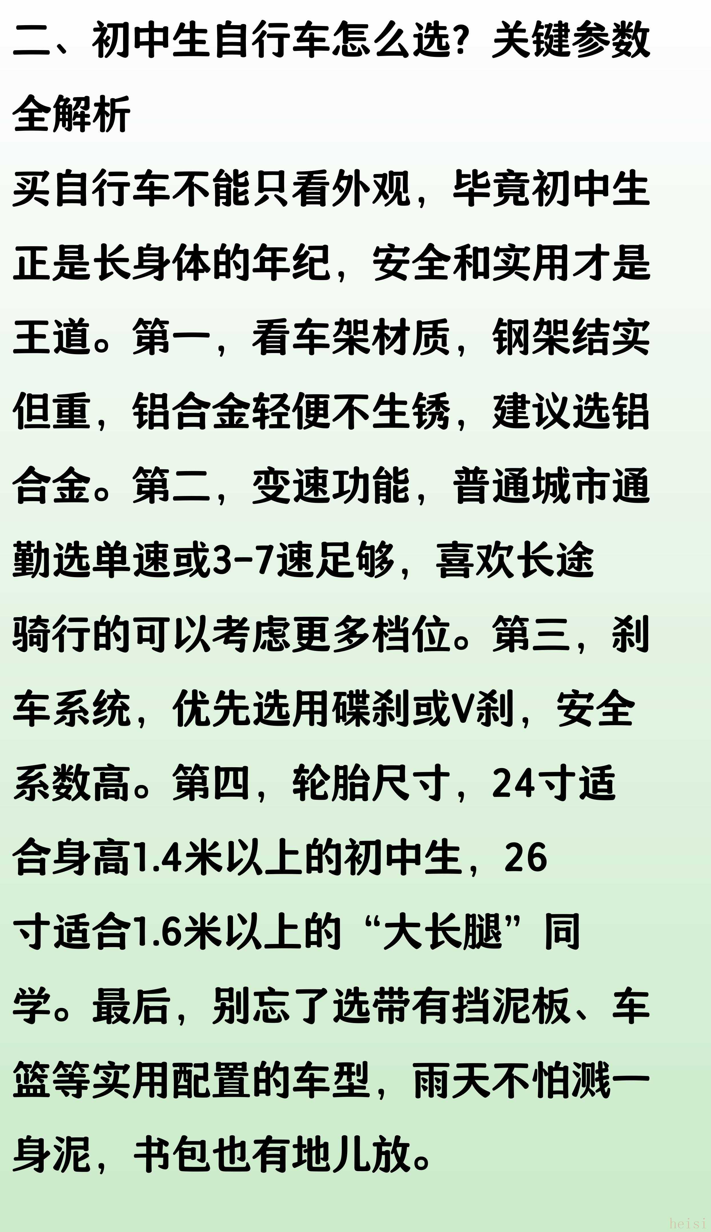 這是一份為初中生量身定制的自行車選購指南,結合了性價比車型推薦和使用場景解析,希望能幫助你或你的孩子選到一輛既實用又喜歡的自行車!