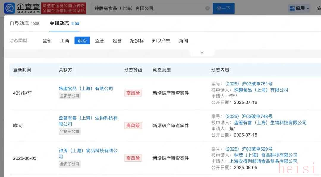 值得注意的是,此前鐘薛高多家子公司已被申請(qǐng)破產(chǎn)審查。近日,鐘薛高全資子公司即盤箸有喜(上海)生物科技有限公司被申請(qǐng)破產(chǎn)審查,經(jīng)辦法院為上海市第三中級(jí)人民法院。此前,鐘薛高另一全資子公司即鐘茂(上海)食品科技有限公司已被申請(qǐng)破產(chǎn)審查,申請(qǐng)人為上海安得列郎晴食品貿(mào)易有限公司。