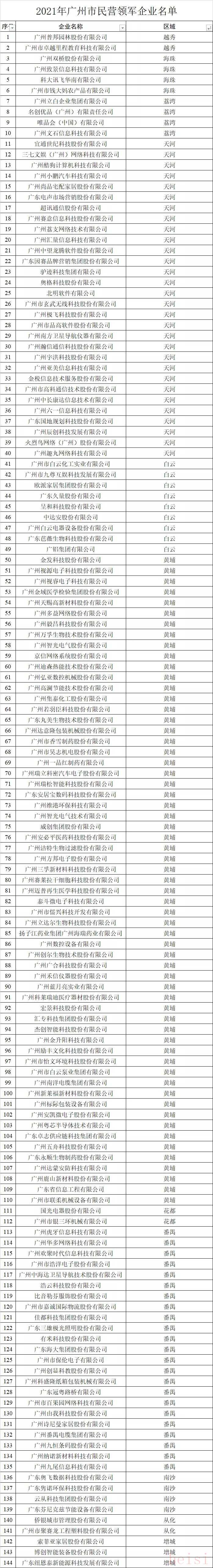 近期,廣州市工業(yè)和信息化局對(duì)2021年首批廣州市民營(yíng)領(lǐng)軍企業(yè)名單進(jìn)行了公示,共有144家民營(yíng)企業(yè):