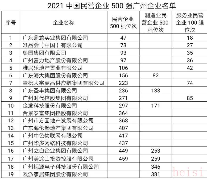 再來(lái)看看2021中國(guó)民營(yíng)企業(yè)500強(qiáng)廣州企業(yè)名單: