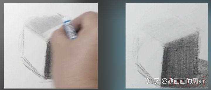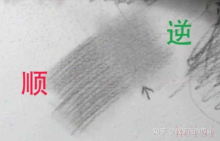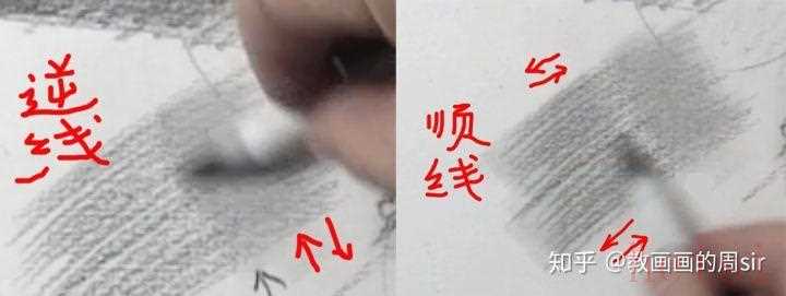 第二,逆著線條,用擦筆揉擦,比順著要更容易揉勻。