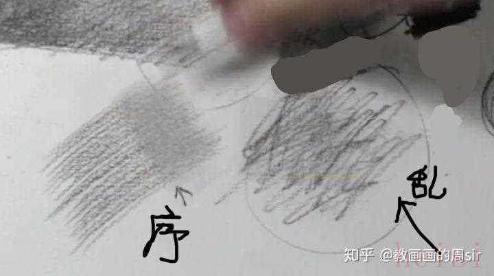 第一個,排線的時候呀,你要把線條排均勻,有秩序,如果你像右邊這樣排線,那是肯定揉不勻的。而左邊那樣的線條,一下子就揉勻了。