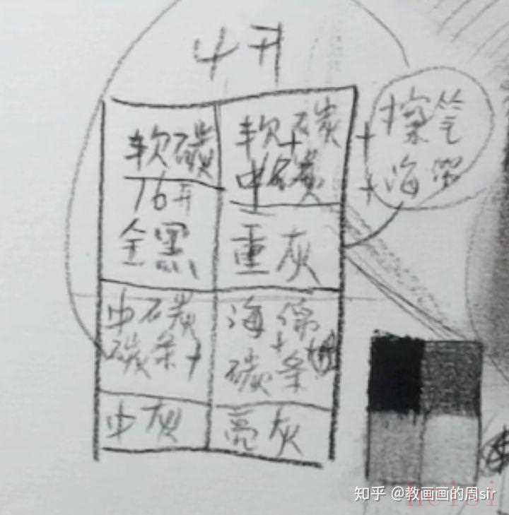 炭筆很簡單,就三個型號:軟炭,中炭,硬碳。