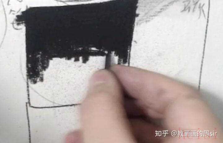沒錯,就是這樣的握筆姿勢,三只手指抓著軟炭的筆尖,來回涂!很暴力很粗獷!